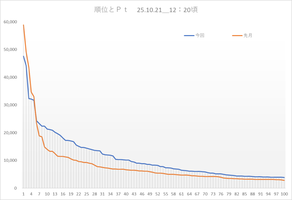 | 100位 | 3,818 Pt | 2,832 Pt | 2,720 Pt |
